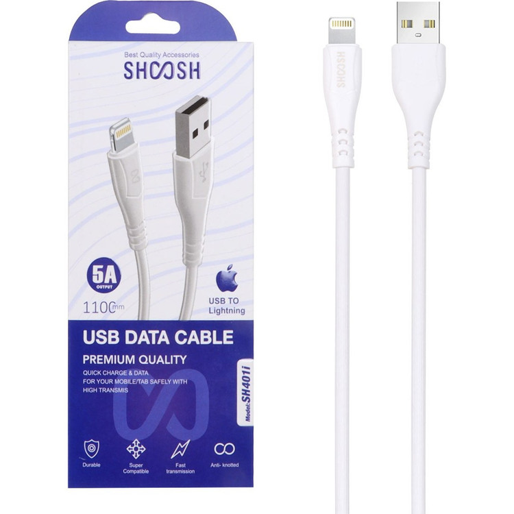 کابل شارژ لایتنینگ 1.1 متری فست آیفون Shoosh مدل SH401i - سفید 5A